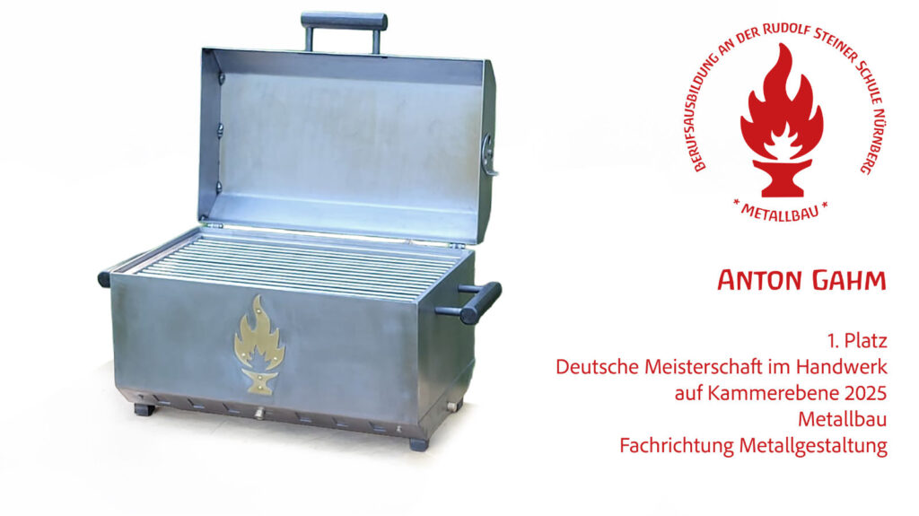 … wurde bei der Deutschen Meisterschaft im Handwerk 2025 auf Kammerebene als 1. Kammersieger im Bereich Metallbau, Fachrichtung Metallgestaltung, ausgezeichnet.