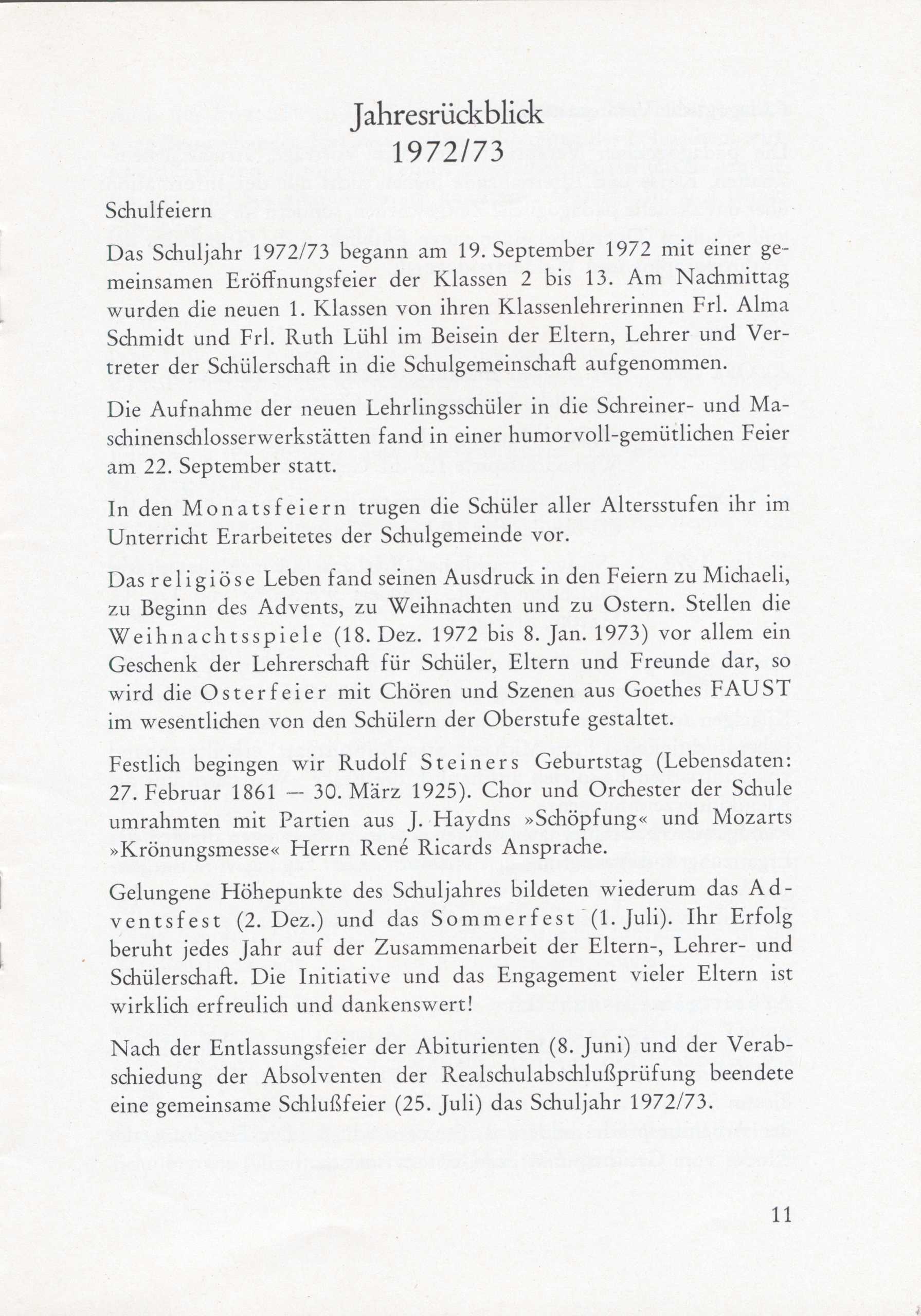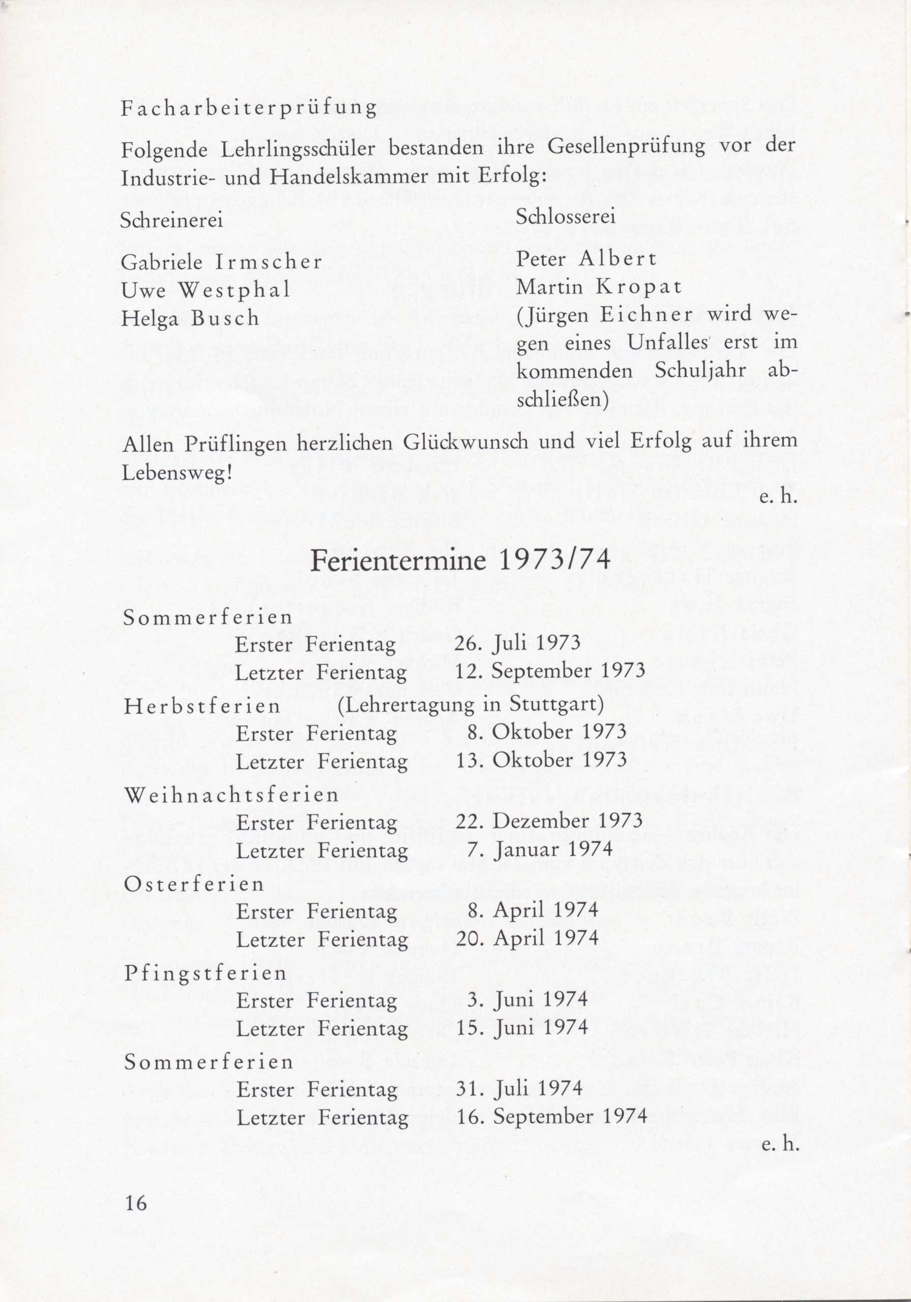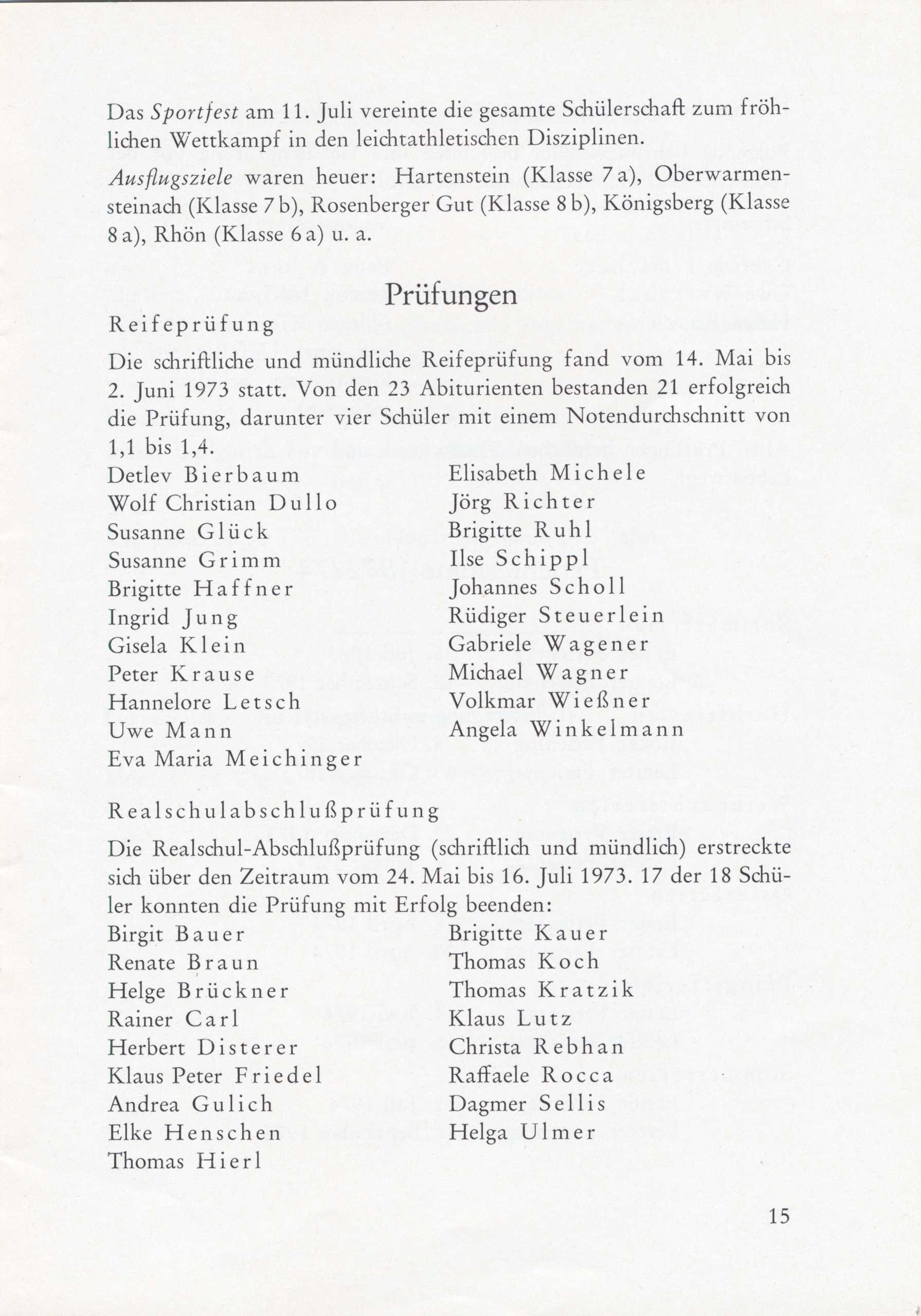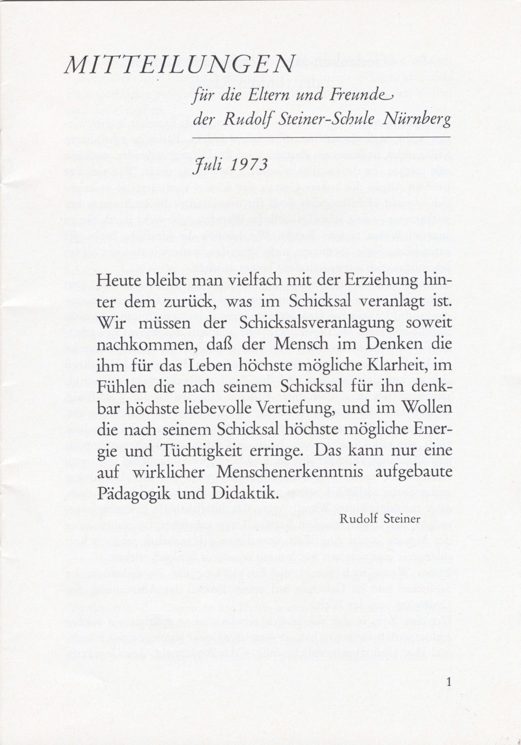 Schulgeschichte: Mitteilungen Juli 1973