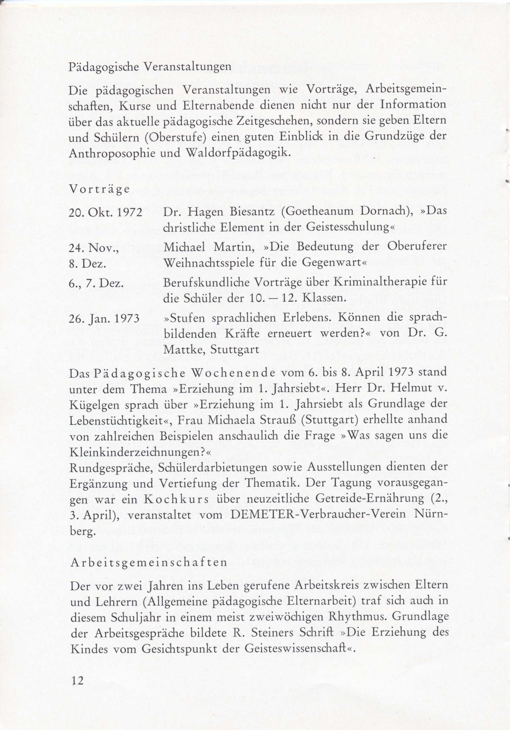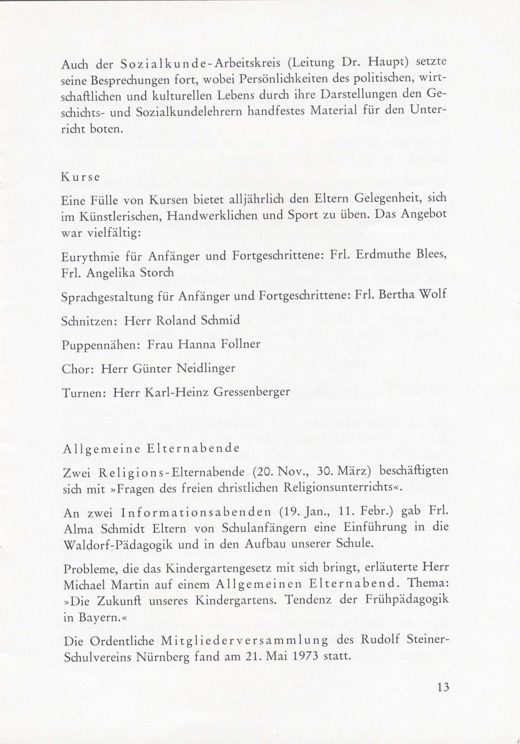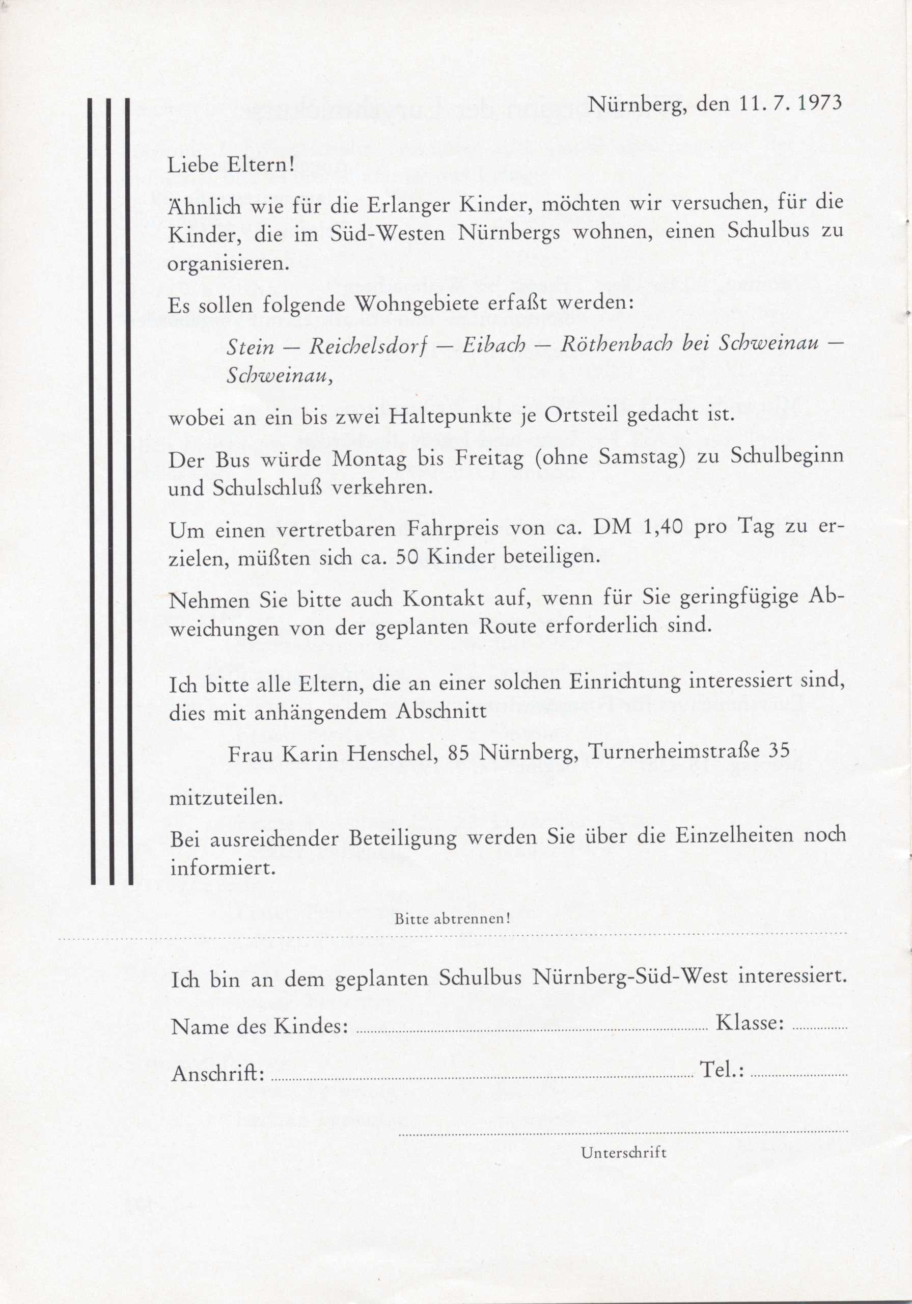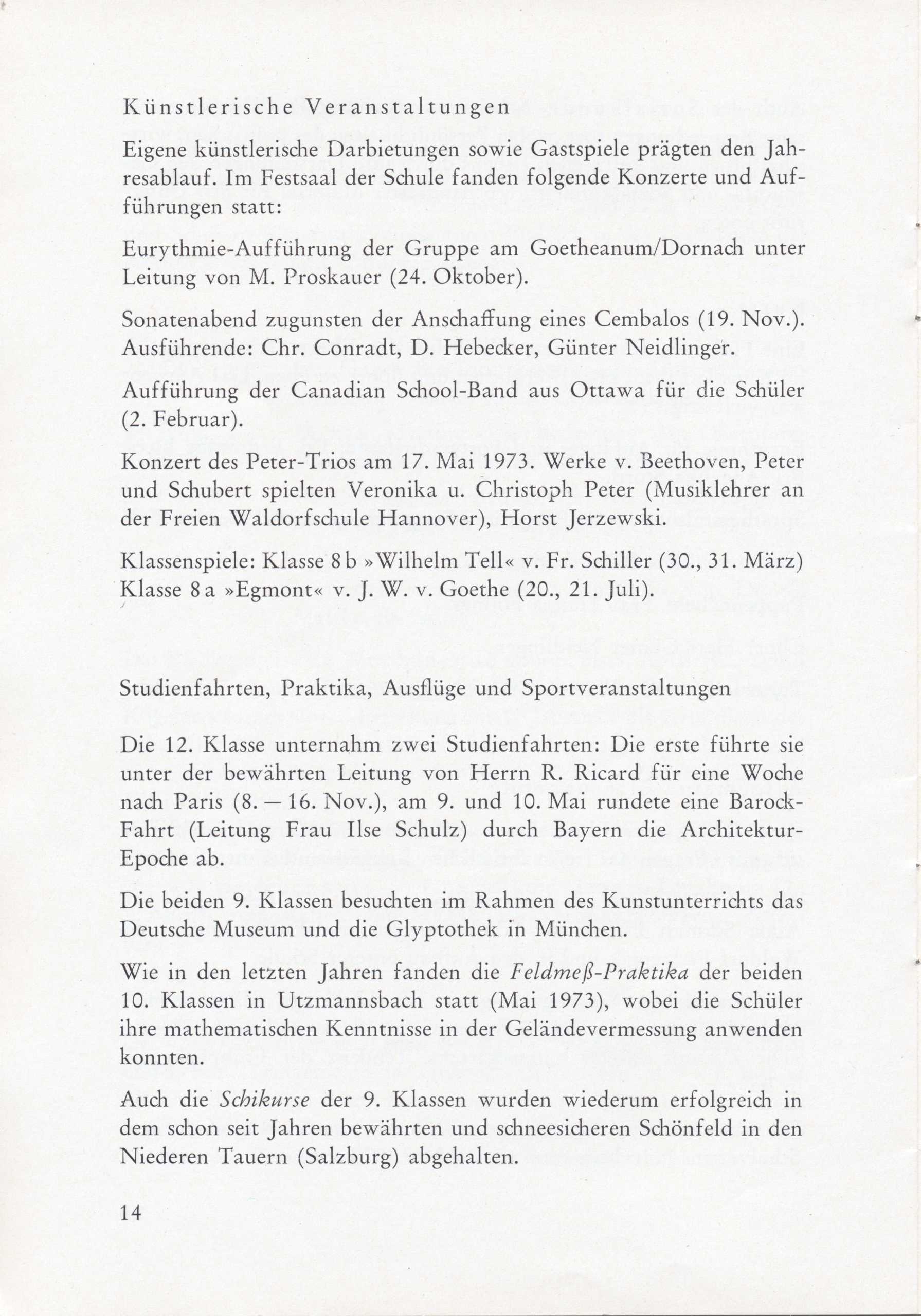 Schulgeschichte: Mitteilungen Juli 1973