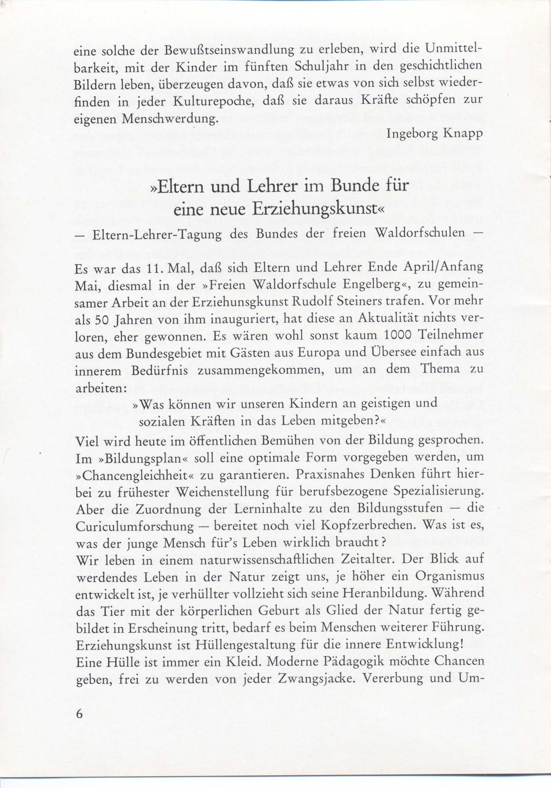 • Bericht von der Eltern-Lehrer-Tagung des Bundes der Freien Waldorfschulen