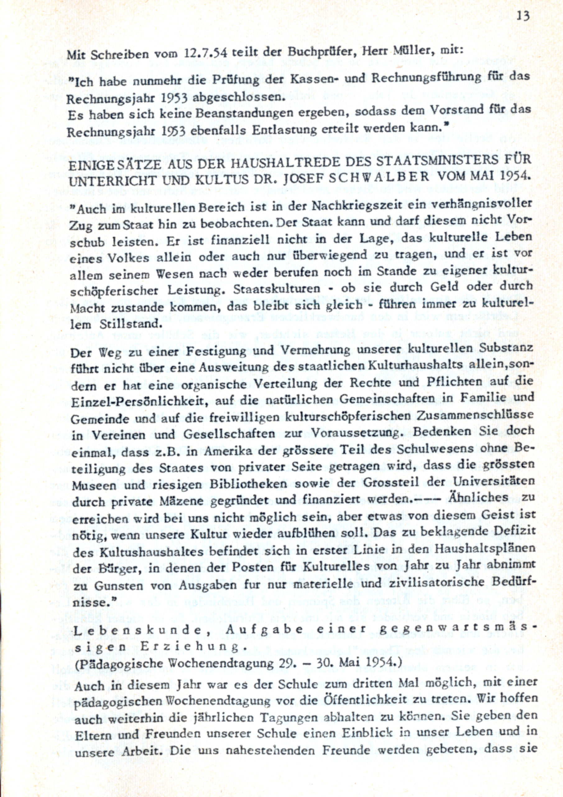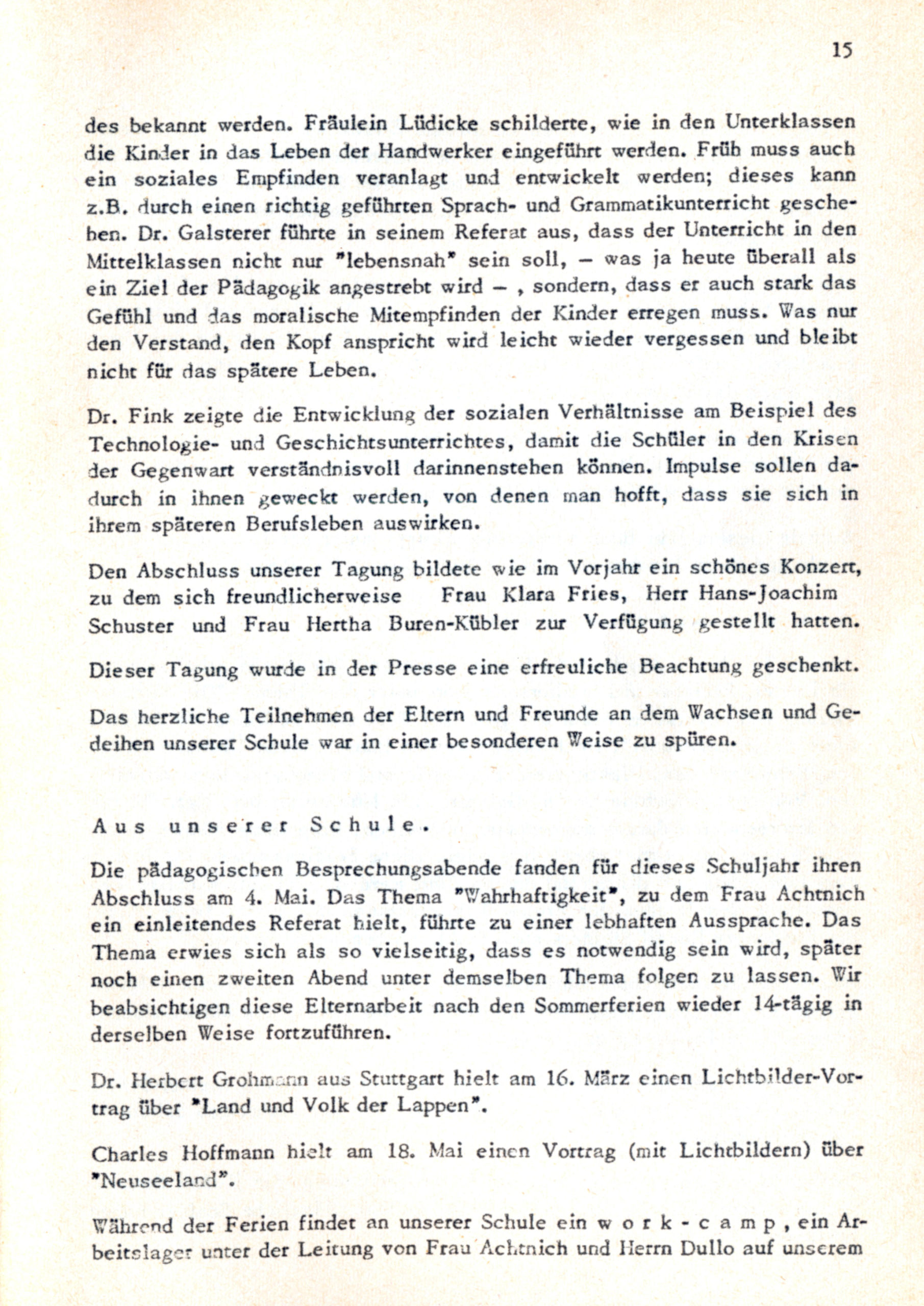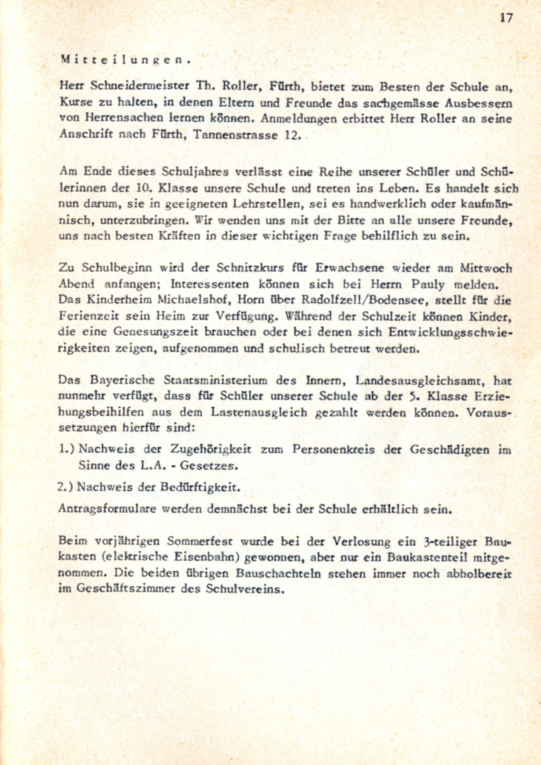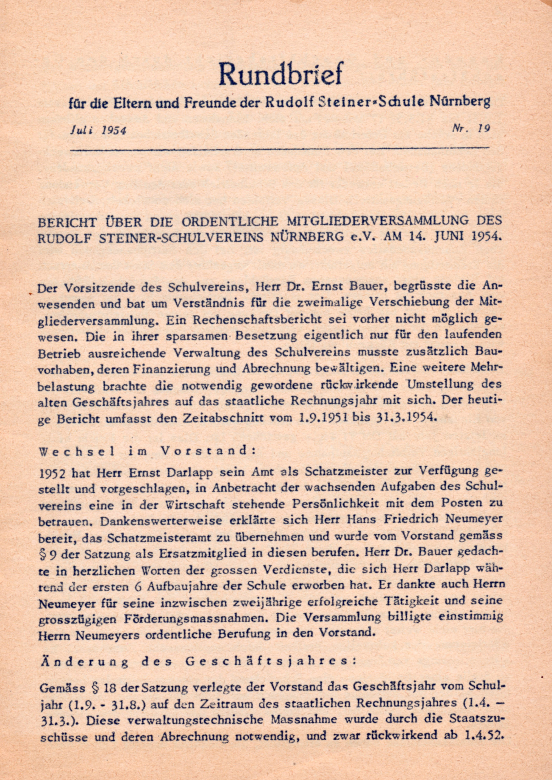 Machen Sie einen Ausflug in die Geschichte unserer Schule mit. Beim Aufräumen fand sich ein Rundbrief (der Vorläufer unseres “Wegzeichen”), der im Juli 1954 an die Schulgemeinschaft ging.